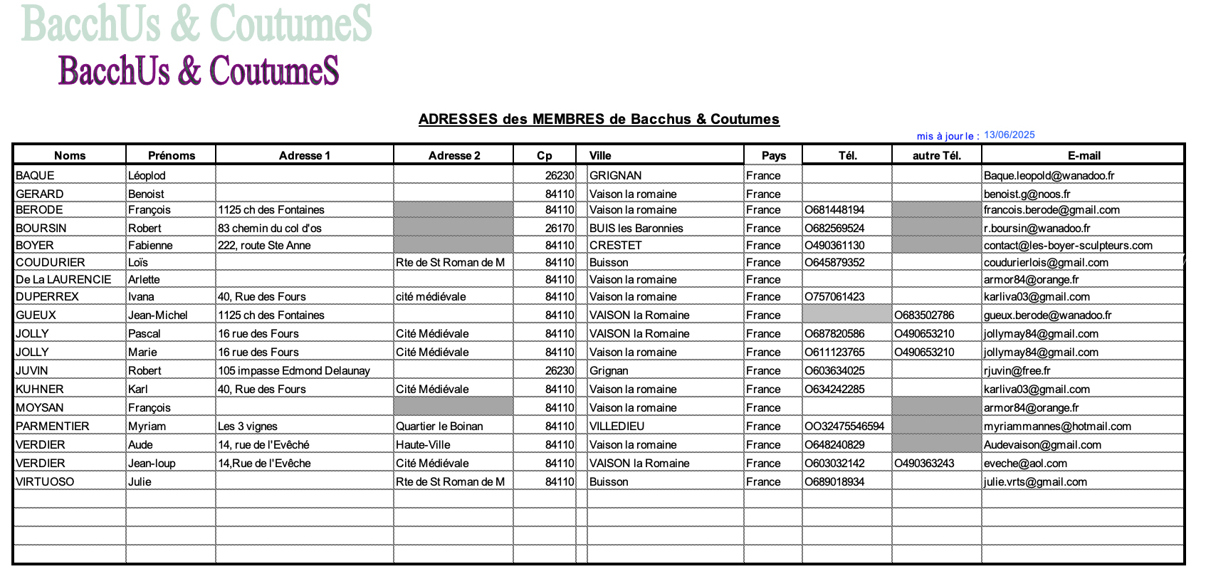 Membres de Bacchus